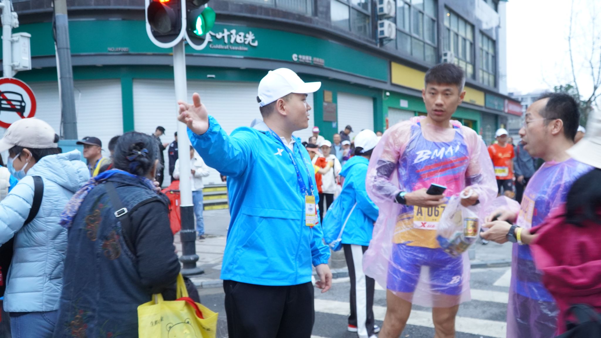 志愿者方思源:作为起点外场引导组组长,我统筹协调109名组员,分布在42个路口点位,指导他们在赛事关键路段提供有力的引导支撑,确保参赛者的高效入场。在马拉松赛事的志愿者活动中,我深感使命光荣且责任重大。