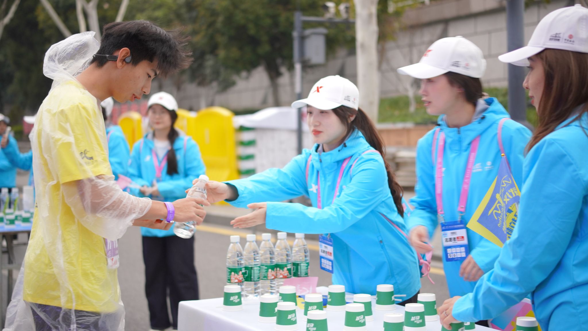 水站看似简单,但却是马拉松赛事中不可或缺的一环。认真准备每一杯水,确保跑者及时补充水分,是保障赛事顺利进行的重要环节。能够为跑者们提供第一杯水,见证他们踏上征程的瞬间,感受到自己也是他们实现梦想的一部分,这让我们的汉马志愿工作充满了成就感和使命感。目睹不同年龄、不同背景的跑者为了梦想拼搏,感受他们的坚持和毅力,深受鼓舞,也更加理解马拉松精神的内涵。