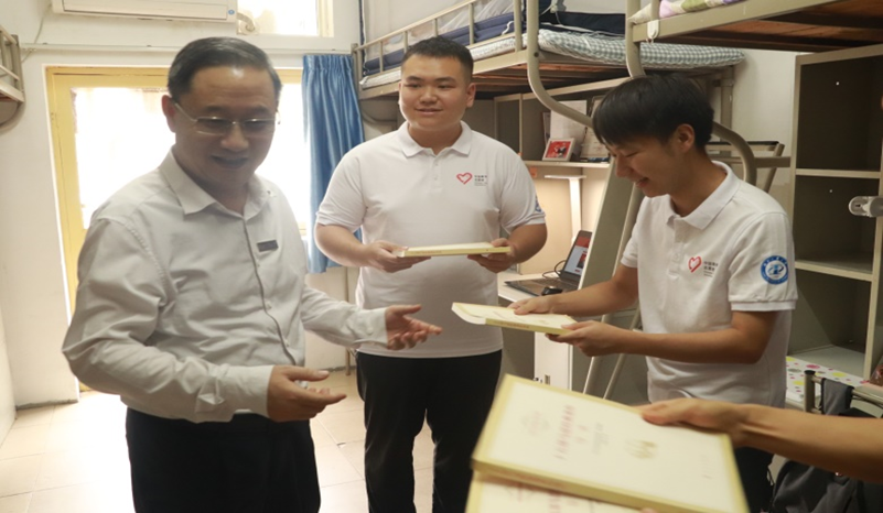 彭育园一行实地察看新生宿舍住宿环境,详细询问了新生的学习生活情况,为新生们送上开学礼物,同学们纷纷表示要继续学好专业知识、提升专业能力,做好迎接新学期、新生活的准备。