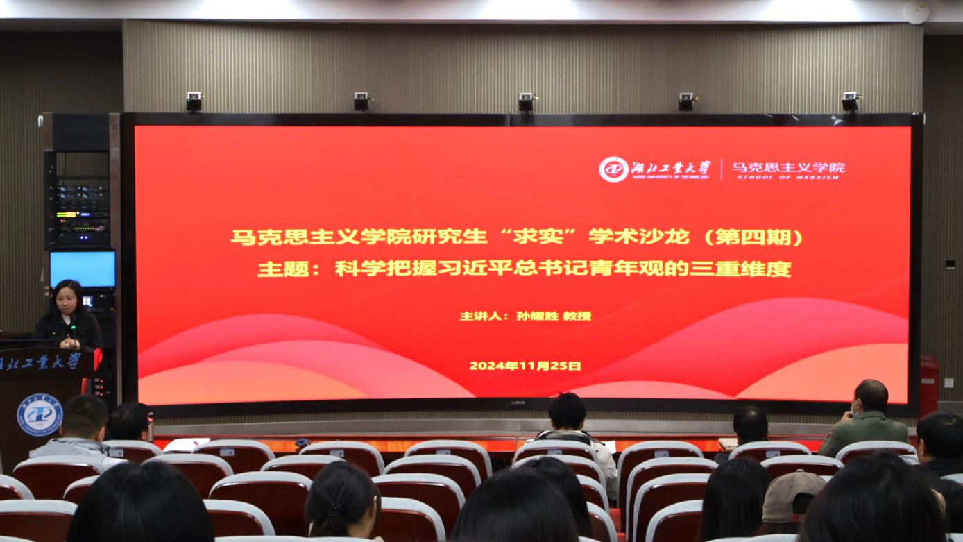 (供稿 周晨秋 摄影 孙悦 审稿 丁银河)为激励引导马克思主义理论学科研究生担当作为、求实创新、潜心研究,11月25日晚,马克思主义学院第四期“求实”学术沙龙在工程一号楼五楼VR教室举行。思想政治教育二级学科负责人孙耀胜教授为主讲嘉宾,报告主题为“科学把握习近平总书记青年观的三重维度”。会议由副院长华倩主持。全体马克思主义学院研究生及马克思主义理论各二级学科教师代表参会。