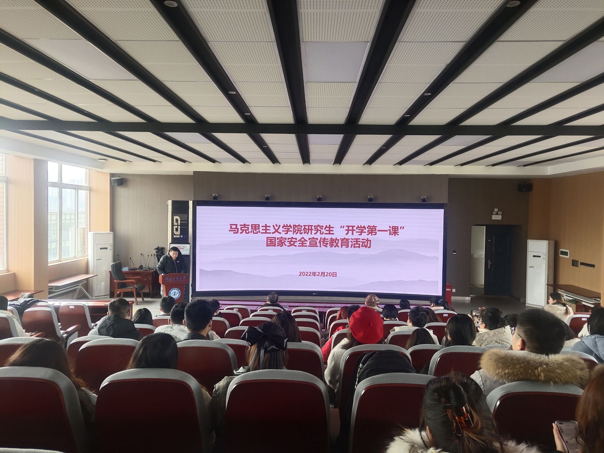 为引导研究生牢固树立总体国家安全观,提升广大研究生依法履行维护国家安全、荣誉和利益义务的自觉性。近期,马克思主义学院组建了国家安全宣传教育讲师团,推出研究生国家安全宣传教育系列活动。2月20日,研究生国家安全宣传教育第一讲在工程一号楼五楼虚拟仿真思政课体验教学中心进行,马克思主义学院华倩教授以《新形势下深入践行总体国家安全观》为题,给全院硕士研究生带来了一场精彩的学术讲座。马克思主义学院院长孙厚权、副院长韩东、国家安全宣传教育讲师团成员以及研工办的老师参加活动。