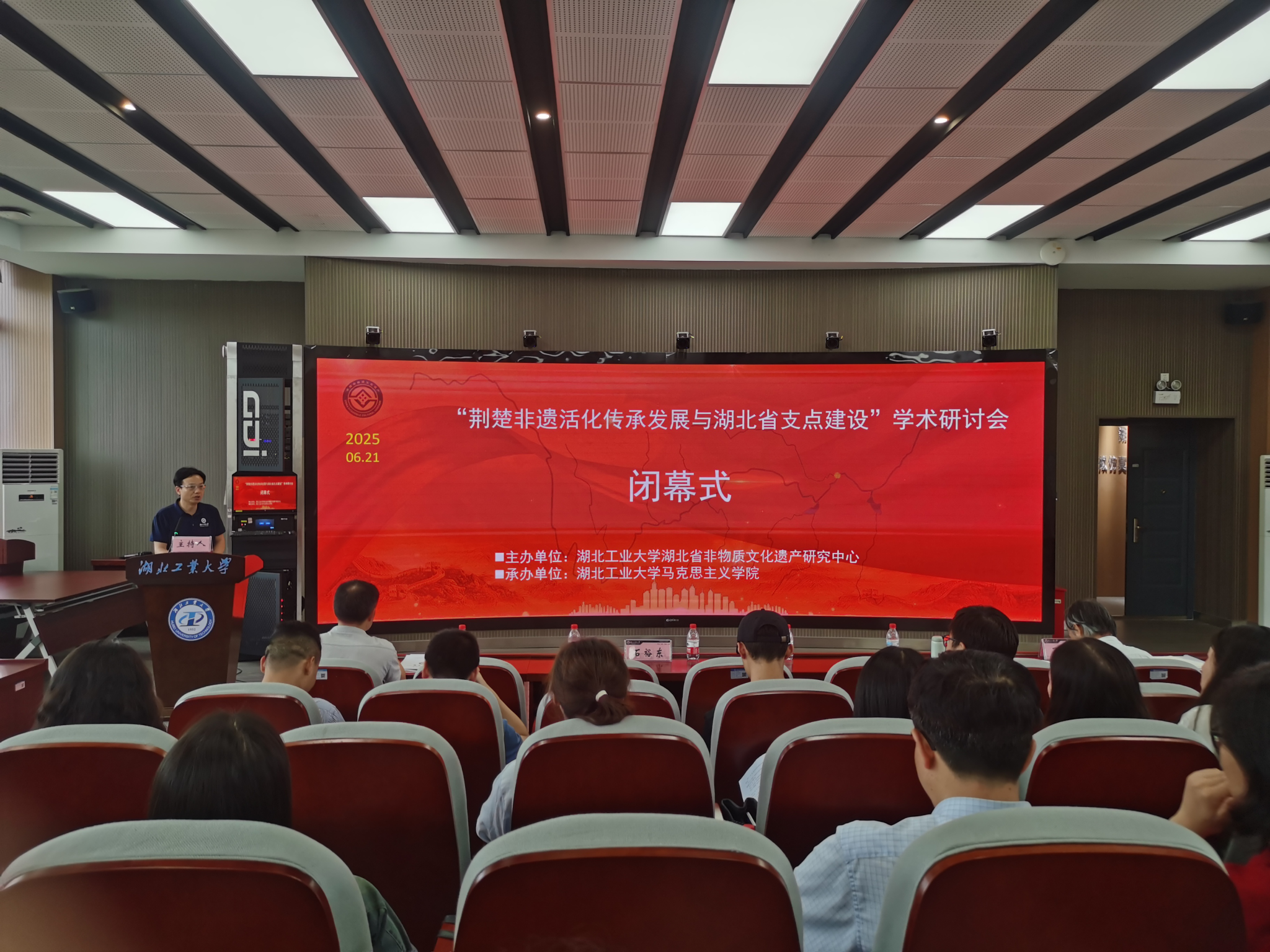 湖北省文化和旅游厅非遗处二级调研员胡双喜和湖北工业大学马克思主义学院副院长石裕东教授分别主持了两个阶段的主旨报告。