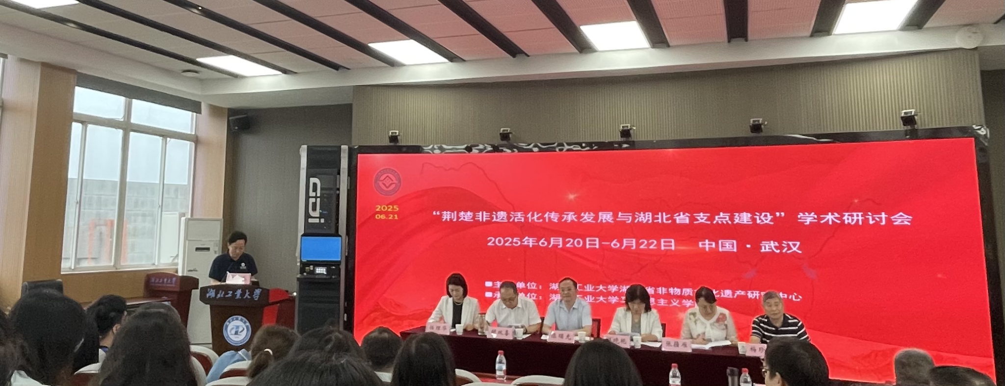 (张传娟 供稿 石含章 摄影 丁银河 审核)6月21日,“荆楚非遗活化传承发展与湖北省支点建设”学术研讨会在湖北工业大学成功召开。来自湖北省文化和旅游厅、武汉市文化和旅游局、武汉市洪山区文化和旅游局、湖北省社会科学院的领导和来自暨南大学出版社、安徽财经大学、武汉大学、中南财经政法大学、湖北大学、湖北工业大学、湖北民族大学、江汉大学、武汉轻工大学、荆楚理工学院、湖北工业职业技术学院、武汉中源文化、仙桃市社区教育指导中心、仙桃市剪纸协会等单位的近百名专家学者、出版界、企业界、文化界人士及学生代表参加了研讨会。