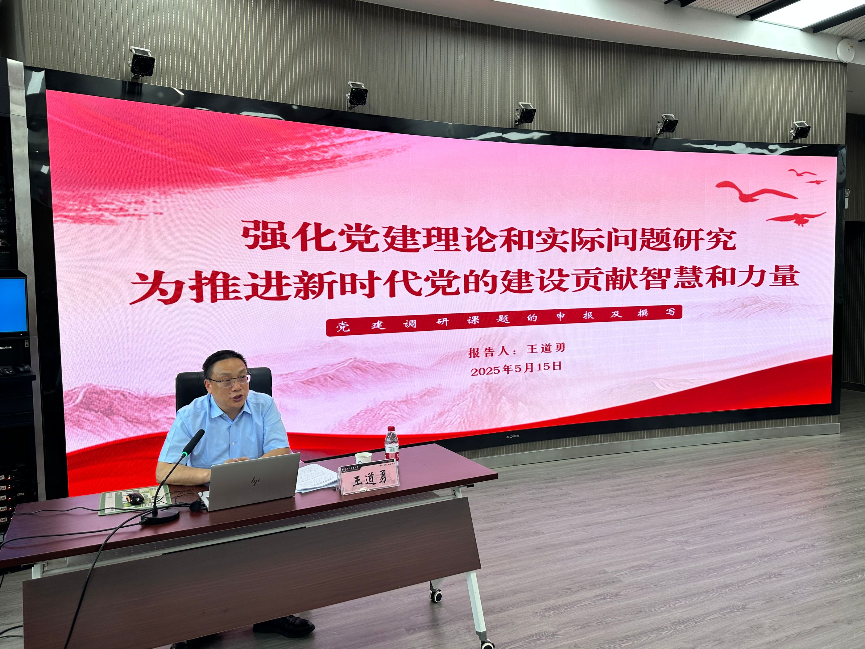 为进一步提升学院教师申报党建研究课题的能力,助力学科高质量发展,5月15日下午,学院邀请湖北党员生活杂志社党建理论部主任王道勇开展专题讲座。学院领导班子及全体教师参加会议,会议由副院长华倩主持。