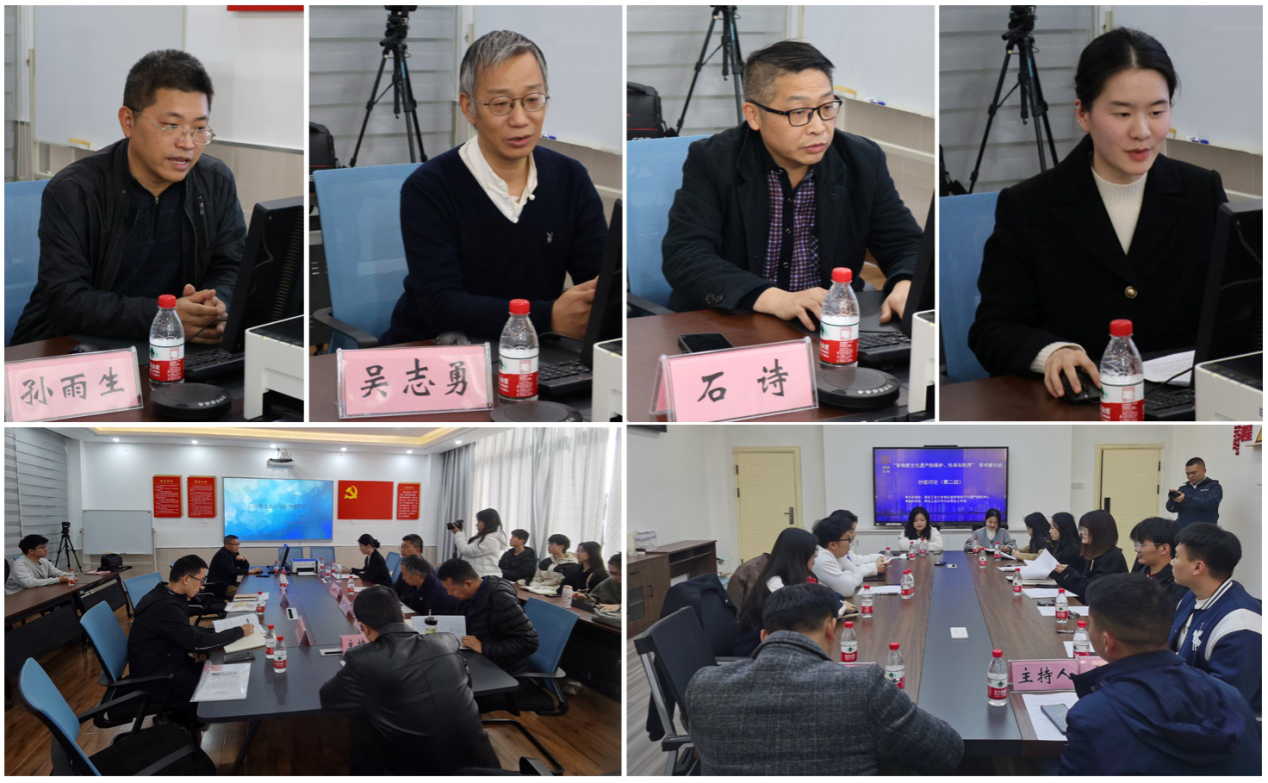 在下午的分组讨论环节,与会师生从不同的视角、领域等就非物质文化遗产的保护、传承和利用展开了研讨。湖北工业大学经济与管理学院孙雨生教授、湖北大学新闻传播学院吴志勇老师、湖北工业大学外语学院石诗副教授、湖北工业大学魏忠明教授分别以“面向红色非遗资源一体化管理的知识图谱构建机理” “非物质文化遗产融入高校思政课教学” “非物质文化的海外传播” “襄樊承恩寺明代梵钟铭文解读及其品牌建构与传播”为题作了发言。来自武汉大学、湖北工业大学等高校的10余位博士、硕士研究生围绕工匠精神、非遗数字化、非遗知识图谱、红色非遗资源、非遗与思政课等话题展开了热烈讨论。湖北省非物质文化遗产研究中心副主任邢起龙副教授和严可老师分别主持了两个小组的讨论。