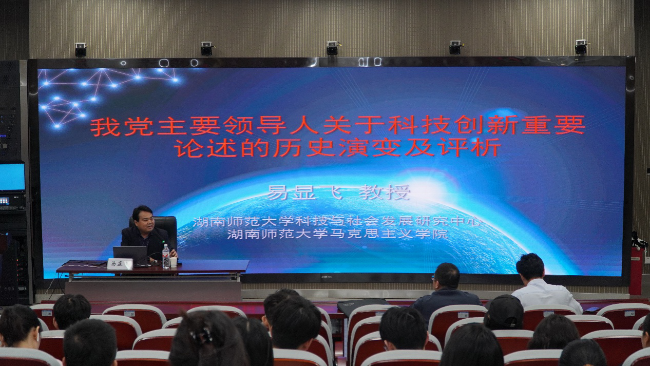 丁银河作总结发言。他指出,易教授学识渊博,功底深厚,其报告具有很强的理论性、针对性和指导性,语言生动、史料翔实,既开阔了全院师生的科技创新视野,又提高了研究新时代中国特色社会主义思想的政治自觉和理论自觉。