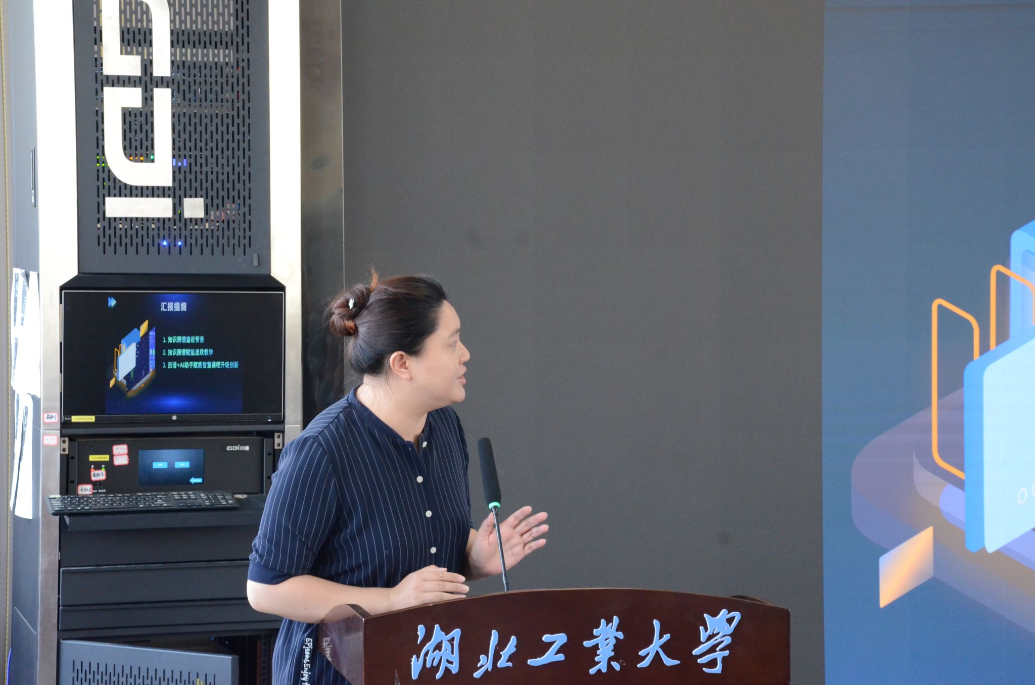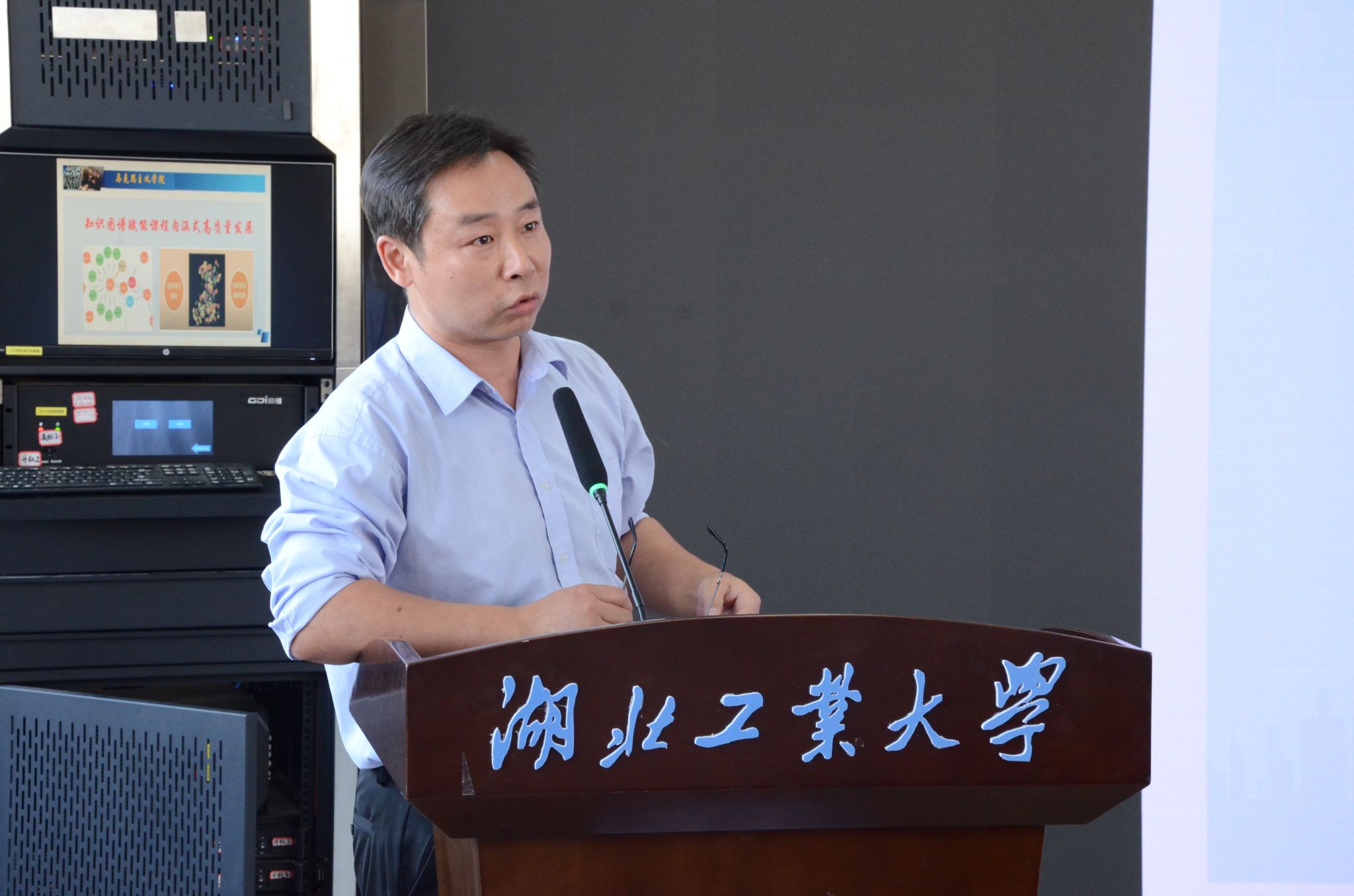 6月13日下午,湖北工业大学2024年第9期教师教学沙龙在工程一号楼A座5楼VR中心举行。本次沙龙由马克思主义学院主办,以“知识图谱赋能高校课程内涵式高质量发展——以高校思政课为例”为主题,武汉理工大学马克思主义学院教授刘国龙、超星集团编辑部课程策划师张苑、马克思主义学院副教授昌灏结合沙龙主题进行分享,近百位来自各学院的教师参加研讨与交流。