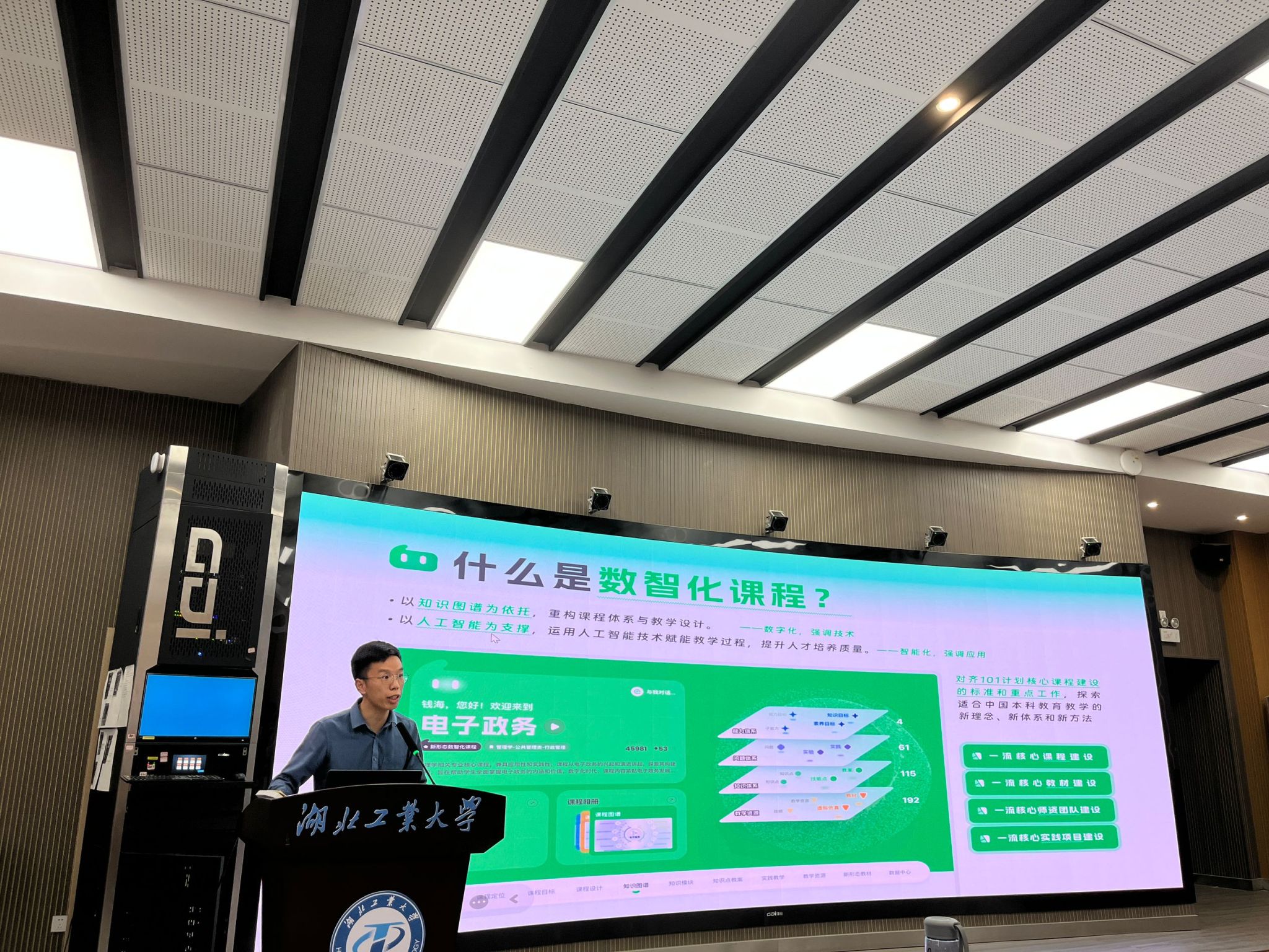 李庚以“数智化课程建设——知识图谱+人工智能,数字化课程引领未来”为主题,从知识图谱+AI技术对教学带来的变化切入,从政策导向以及知识图谱对课程、互动学习、实践教学、专业改革的作用分析了建设知识图谱的重要性,重点介绍了AI和知识图谱对教学的作用,并就本校的具体案例以及全国的典型案例进行了分享。