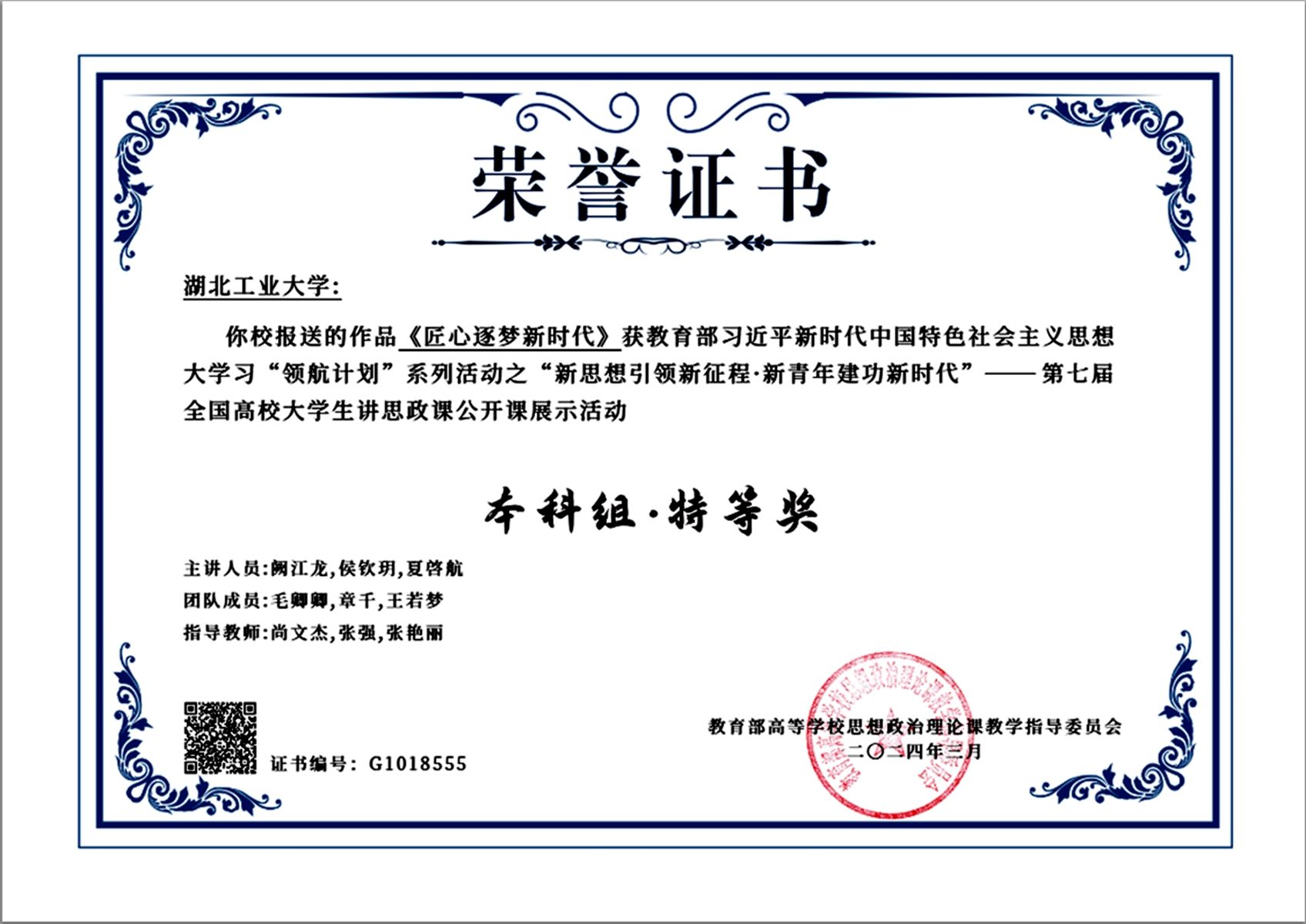 今天是习近平总书记“3.18”重要讲话发表五周年的纪念日,教育部高校思政课教学指导委员会正式公布了习近平新时代中国特色社会主义思想大学习领航计划主题教育活动有关获奖作品名单。其中,由我校马克思主义学院指导的学生团队作品《匠心逐梦新时代》喜获“新思想引领新征程·新青年建功新时代”——第七届全国高校大学生讲思政课公开课展示活动特等奖。