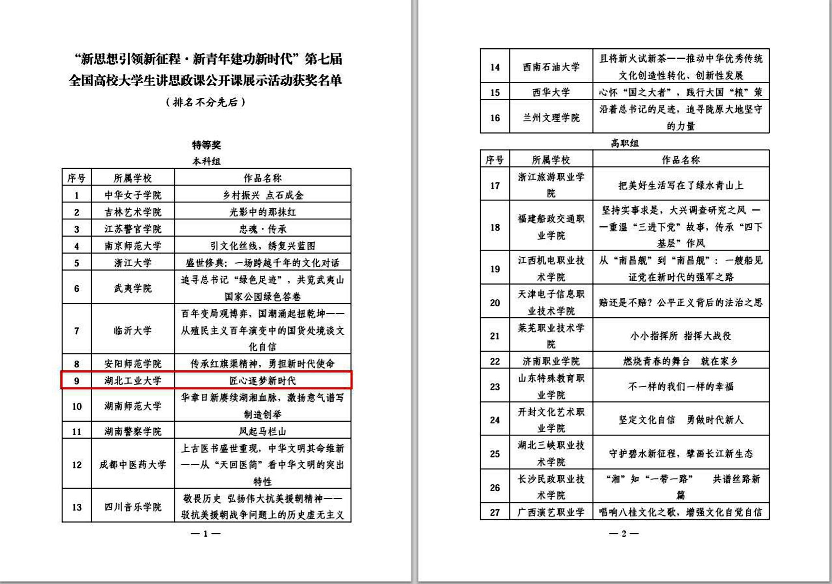 喜报!我校获第七届全国高校大学生讲思政课公开课展示活动特等奖