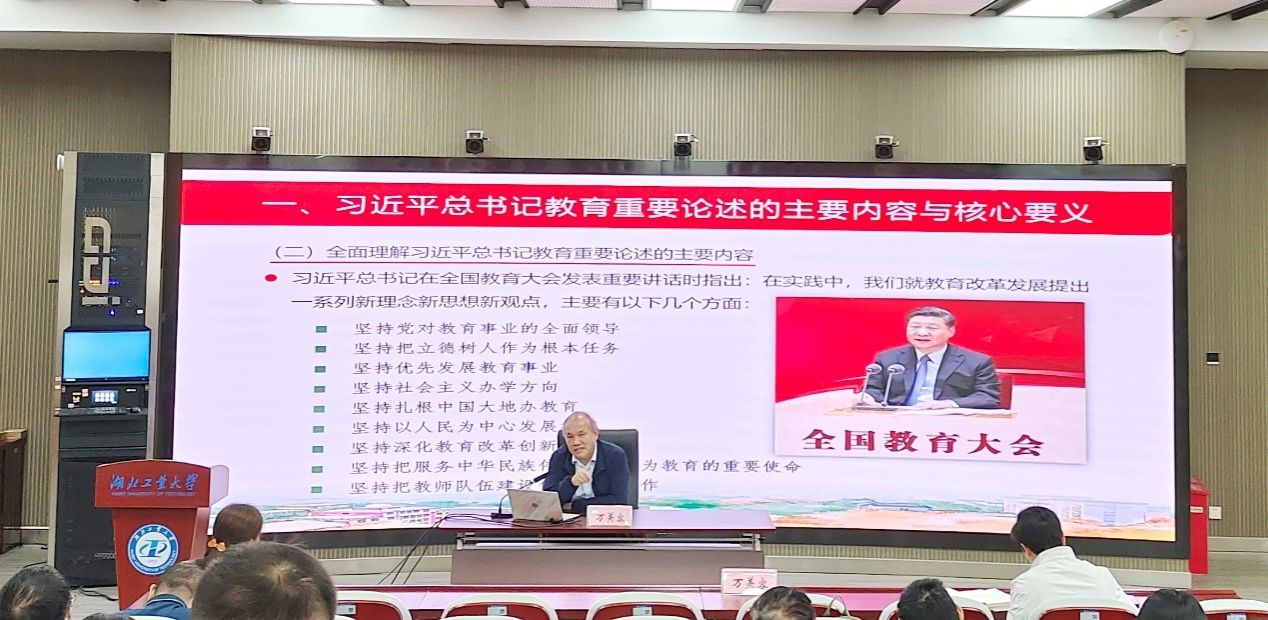 万美容以《深入学习习近平总书记教育重要论述 推动新时代高等教育高质量发展》为题,从历史维度和理论深度系统梳理习近平总书记关于教育的重要论述,重点阐释习近平总书记关于教育的重要论述的重大价值、主要内容和核心要义,提出三点建议:一是准确把握习近平总书记关于教育的重要论述的主要内容和核心要义;二是锚定教育强国建设,科学谋划高等教育高质量发展;三是坚持党的全面领导,切实保证高等教育高质量发展。他指出,习近平总书记关于教育的重要论述意义重大,为新时代加快推进教育现代化、办好人民满意的教育提供了科学指南。他强调,党的领导是高等教育高质量发展的根本保证,全面加强和改进高校党的建设是抓好办学治校的基本功,思想政治工作应是学校各项工作的生命线。