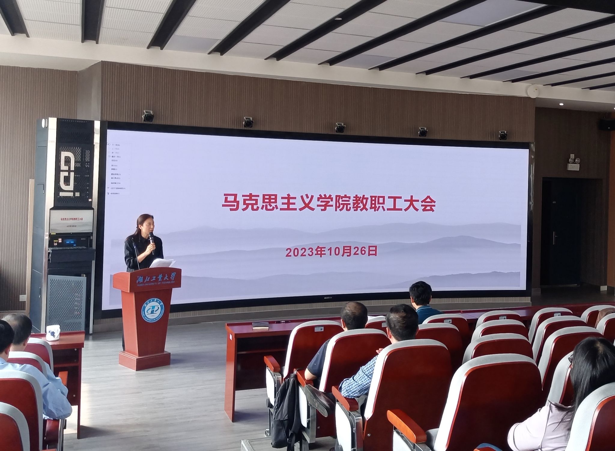 10月26日,学院在5楼报告厅开展政治理论专题学习暨学术报告会,学院全体教职工参加了会议,会议由院党委书记陈燕主持。