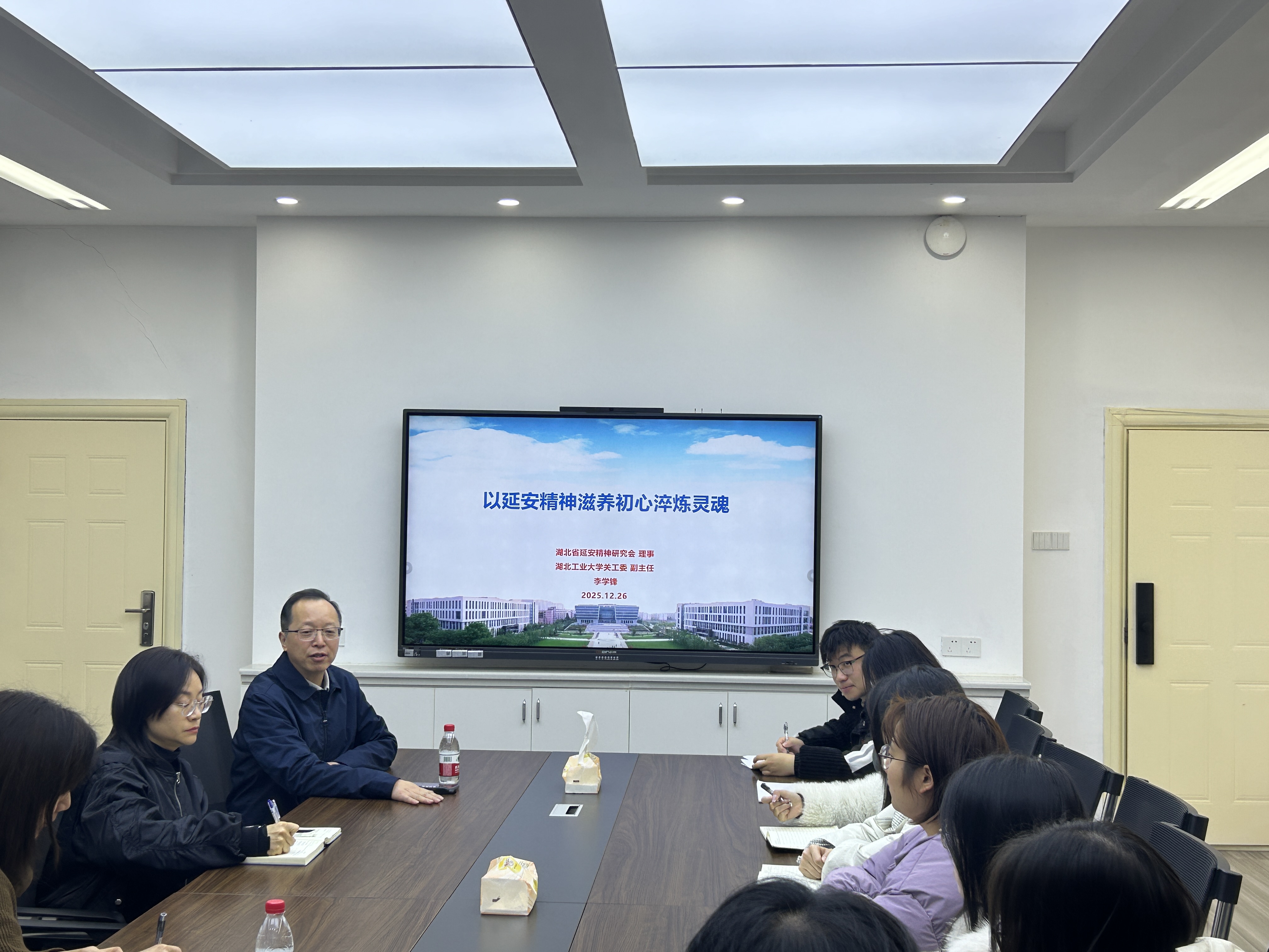为深化党史国史学习教育、厚植红色基因、筑牢信仰之基,12月26日,马克思主义学院举办“五老”党史国史教育活动。活动邀请湖北省延安精神研究会理事、湖北工业大学关工委副主任李学锋作专题报告,学院党委书记陈燕、副书记王娇出席活动,全体研究生参与。