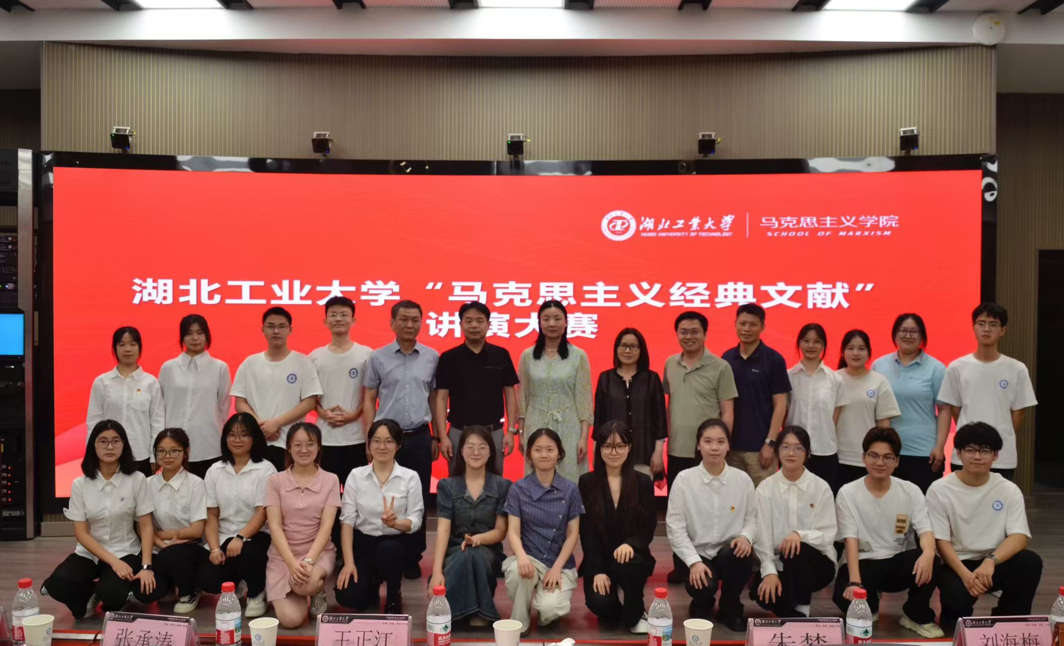 5月13 日,湖北工业大学第十届 “马克思主义经典文献” 讲演大赛在工程一号楼五楼虚拟仿真思政课体验教学中心成功举办。本次大赛以 “烽火砺同心 共铸民族魂” 为主题,旨在推动学生深入学习马克思主义经典文献,凝聚青年力量,铸牢中华民族共同体意识。经过初赛选拔,七支优秀队伍脱颖而出,齐聚现场展开激烈角逐。湖北工业大学党委宣传部副部长王正江、党委学生工作部副部长张承涛、团委副书记朱梦、离退休处副处长俞永保、图书馆副馆长刘海梅等多位领导及老师出席活动并担任评委。