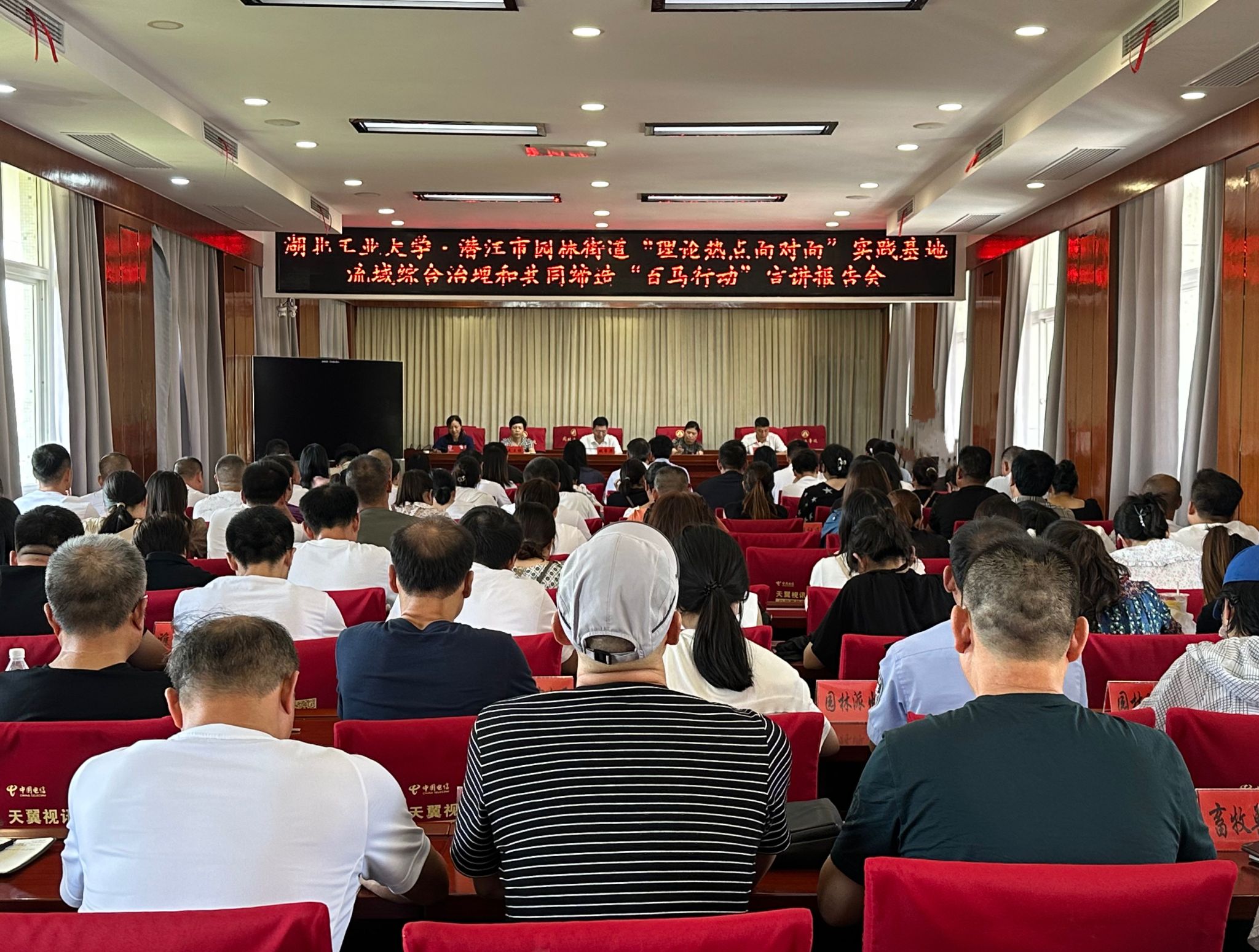 8月23日,湖北工业大学“流域综合治理和共同缔造”百马行动队在校党委副书记胡晓艳同志的带领下赴潜江开展理论宣讲及调研工作,省委讲师团副主任姚亭华、办公室副主任陈静莅临指导,潜江市市委常委、宣传部长王玉梅,潜江市市委宣传部副部长郭代娟,潜江市园林街道党工委副书记、办事处主任李亦哲出席启动仪式。参加本次活动的还有校党委宣传部副部长车海云、马克思主义学院党委书记陈燕、马克思主义学院院长丁银河及其他行动队教师。
