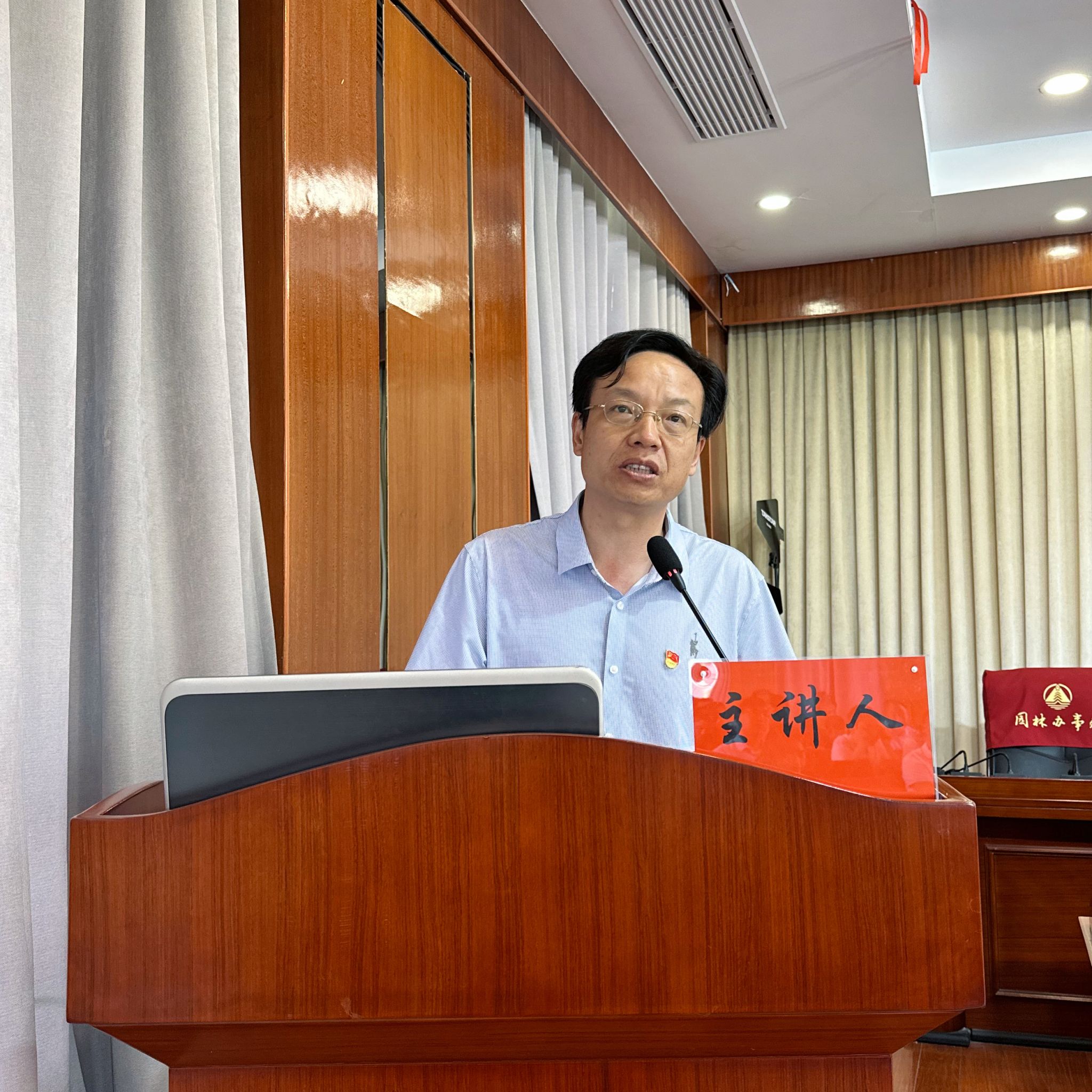 在启动仪式之后,马克思主义学院院长丁银河教授面向园林街道办事处及下辖社区村居的党员干部作了题为《流域综合治理和共同缔造是湖北建设先行区的重要举措》的示范宣讲。在专题辅导报告中,丁院长从国际局势的变化对我国国家发展战略的影响及国家发展战略的调整对湖北社会经济发展提出的新要求为切入口,引导听众深刻领悟习近平总书记考察湖北重要讲话的核心要义和精神实质,面向听众系统解读省第十二次党代会的相关部署及省委省政府围绕流域综合治理及共同缔造工作的相关政策文件精神,最后落脚到潜江市在上述背景下应该“怎么看、怎么办、怎么干”。丁院长的报告获得了在场听众的一致好评,认为报告内容站位高、视野开、定位准、内容实。