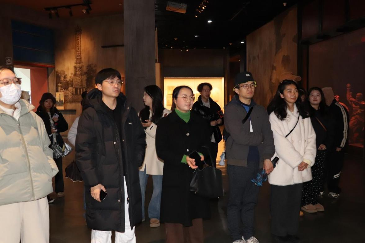 从武昌城头的枪声划破长夜,到共和曙光穿透沉沦阴霾;从救亡图存的呐喊响彻神州,到强国复兴的征程铿锵前行。辛亥革命铸就的爱国初心与革命风骨,早已深深镌刻在中华民族的精神丰碑上。12月23日,马克思主义学院研究生党支部45名师生党员走进武汉辛亥革命博物院,以一场沉浸式主题党日活动,深入贯彻党的二十届四中全会及省委十二届十一次全体会议精神,在百年历史的回响中追溯革命根脉、感悟初心使命、锤炼党性修养,让革命传统教育与思政教育实现深度融合。