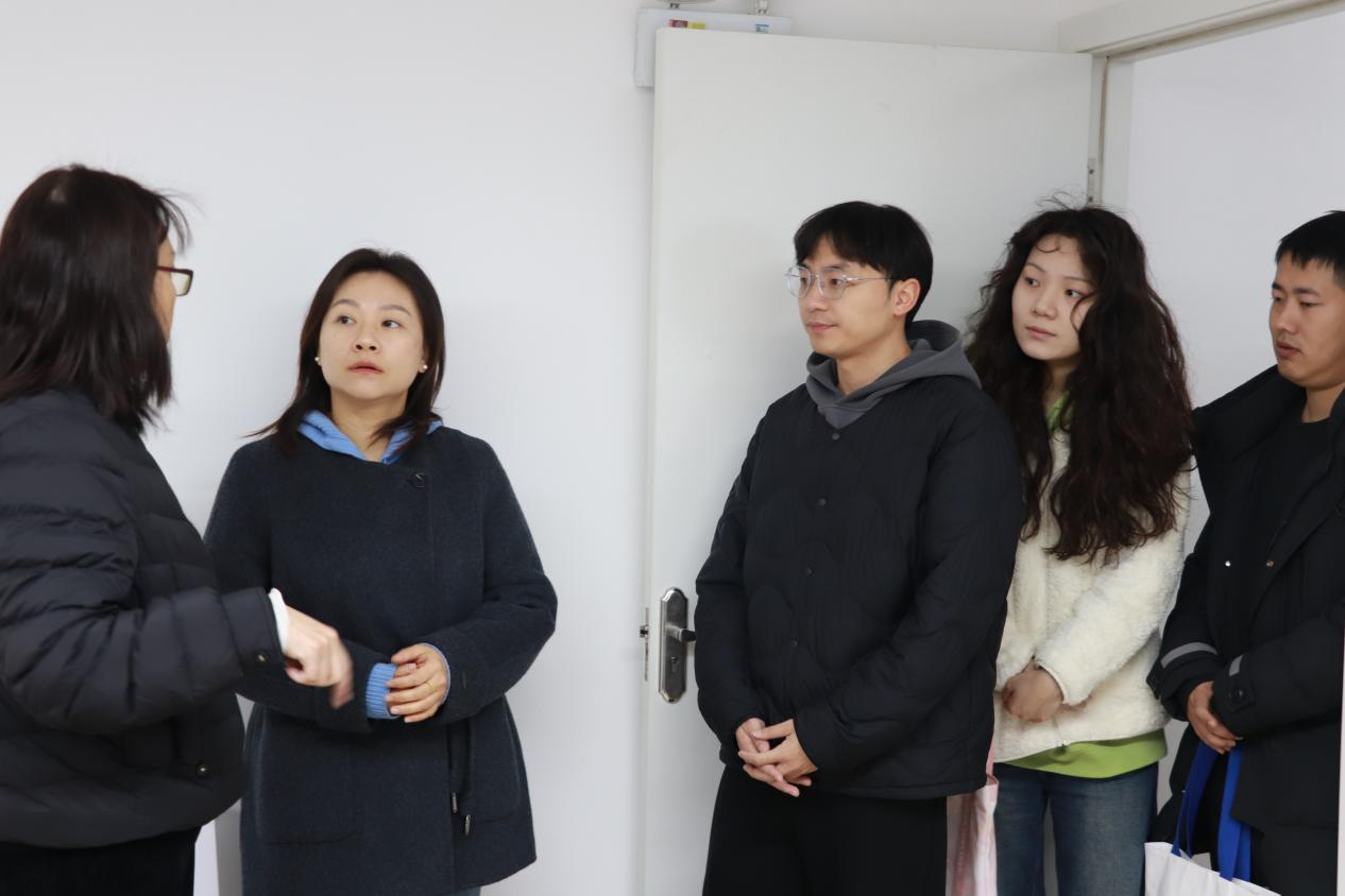 活动伊始,学院党委副书记王娇、研究生辅导员单帅老师一行首先走访了汉阳区五合里社区党员群众服务中心。该中心坚持党建引领,聚焦党员教育管理、群众需求响应和社区资源整合,围绕新就业群体关爱、志愿服务组织培育等基层治理重点,探索形成“党建+服务+志愿”的特色工作模式,切实将治理效能转化为群众获得感。在社区工作人员的详细介绍下,学院领导深入了解了中心的运营机制、服务流程以及在基层志愿服务体系建设与社区治理创新方面的实践经验,对汉阳区以社区为载体推动志愿服务常态化、专业化的实践路径有了直观而深入的认识。